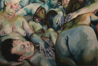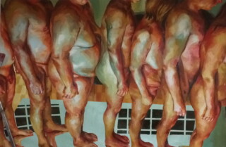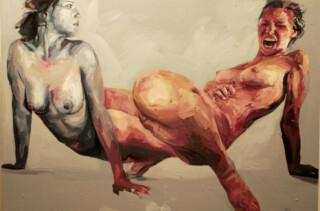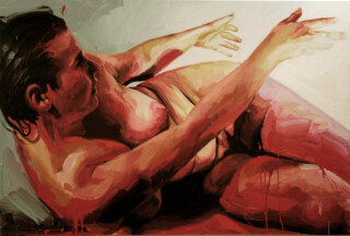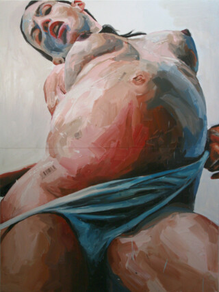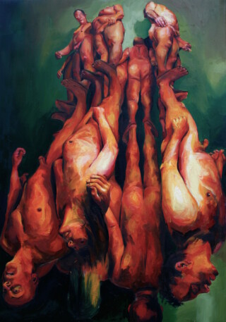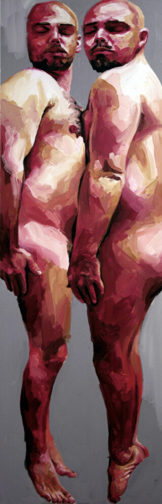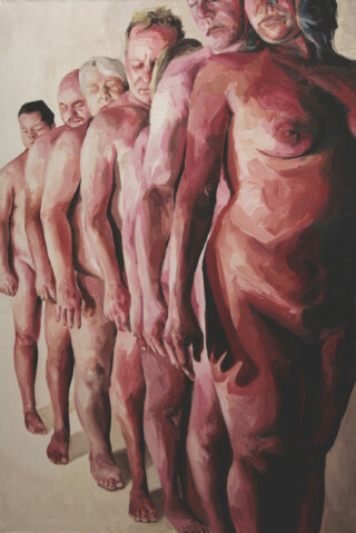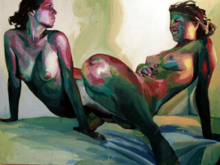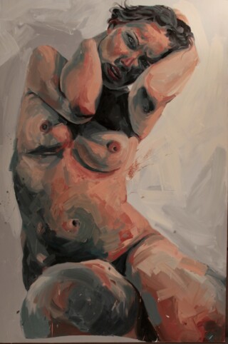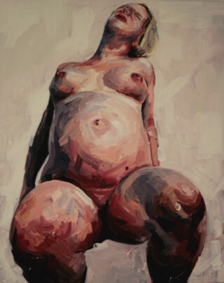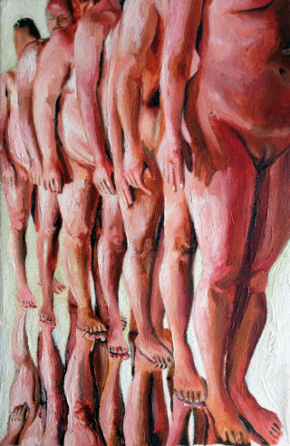 The focus of my painting series “Humans” is the human body – mostly naked and without accessories – as the creation of a higher power. My vision is to show the human being in the field of tension between culture, politics and economy – often in a torn state. I emphasize the difficulty of developing freely in an enforced social, economic and political system.